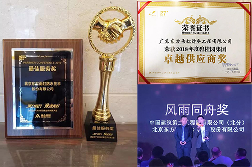 近日,東方雨虹接連獲評“2018年度碧桂園集團卓越供應商獎”“建業(yè)地產(chǎn)最佳服務獎”“鴻坤地產(chǎn)風雨同舟獎”等多項榮譽。