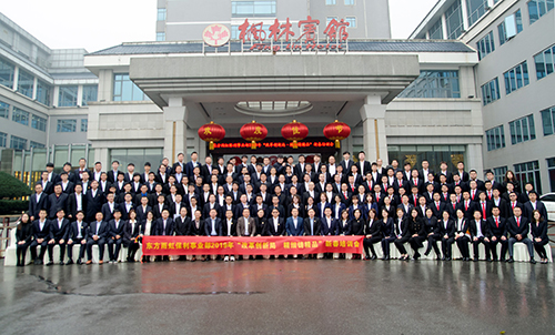 大會最后,尹建榮與各區(qū)域負責人共同簽訂了《2019年年度目標責任狀》。