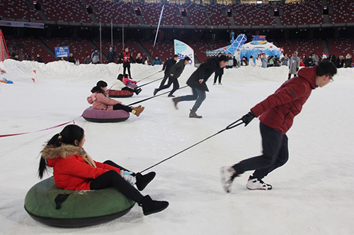 據(jù)悉,此次活動(dòng)圍繞著“感恩、回饋、歡樂、激情”的總基調(diào),除了讓大家體驗(yàn)現(xiàn)場的諸多冰雪項(xiàng)目外,還設(shè)計(jì)了雪圈賽跑、親子呼啦圈比賽、抽獎(jiǎng)活動(dòng)等精彩環(huán)節(jié)。