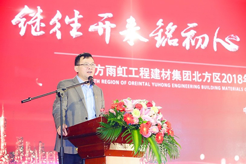 會(huì)上,東方雨虹工建集團(tuán)北方區(qū)董事長(zhǎng)張洪濤首先做工作報(bào)告。以“穩(wěn)健經(jīng)營(yíng)強(qiáng)創(chuàng)新,凝心聚力謀發(fā)展”為主題,總結(jié)2018年經(jīng)營(yíng)成果,部署2019年工作重點(diǎn)。