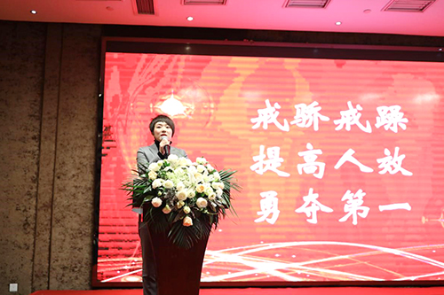 東方雨虹工程建材集團(tuán)華南區(qū)總經(jīng)理黃姣女士充分肯定了四川公司在2018年取得的成績,圍繞著“戒驕戒躁、提高人效、永爭第一”的理念,她要求四川公司全面“學(xué)習(xí)、追趕、超越”。