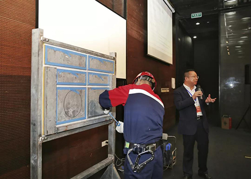 東方雨虹MS膠支持服務(wù)平臺(tái)總監(jiān)朱衛(wèi)如從裝配式建筑對(duì)防水密封膠的要求入手,對(duì)幾種密封膠的性能差異進(jìn)行了分析,通過大量實(shí)驗(yàn)數(shù)據(jù)證明MS密封膠滿足裝配式建筑防水密封需求的性能優(yōu)勢(shì),并詳細(xì)介紹了東方雨虹以MS改性硅酮防水密封膠為核心的裝配式建筑防水密封系統(tǒng)。朱衛(wèi)如連同擁有豐富施工經(jīng)驗(yàn)的施工工人劉紀(jì)松進(jìn)行了現(xiàn)場(chǎng)標(biāo)準(zhǔn)化施工演示,為參會(huì)人員充分展示了MS改性硅酮防水密封膠在裝配式建筑防水密封系統(tǒng)的應(yīng)用。