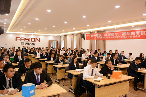 10月12日,風行防水召開2018年全員培訓暨四季度工作部署會,會議以“統(tǒng)一思想、風雨同行、贏戰(zhàn)四季度”為主題。