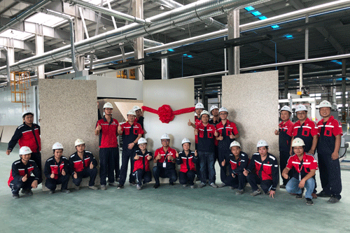 8月30日,東方雨虹蕪湖生產(chǎn)基地一體化板項(xiàng)目順利試機(jī)生產(chǎn),并生產(chǎn)出第一張氟碳/多彩飾面板。