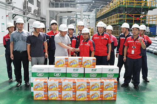 7月31日,江蘇省新沂市開發(fā)區(qū)管委會(huì)一行開展“進(jìn)企業(yè),送清涼” 活動(dòng),慰問仍堅(jiān)持奮斗在一線的徐州臥牛山員工。