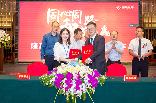 隆基泰和董事長魏少軍、房地產(chǎn)事業(yè)部副總裁張佳、地產(chǎn)成本中心副總經(jīng)理唐攀等高層,以及采筑電商總經(jīng)理都軍,東方雨虹防水集團總裁劉斌、大客戶事業(yè)部總經(jīng)理陳欣剛、銷售總監(jiān)陳遺安等出席了簽約儀式。