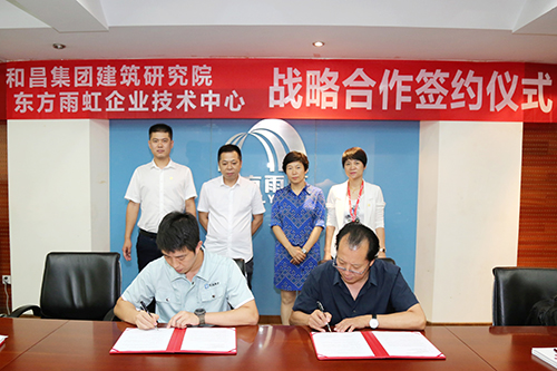 7月6日上午,和昌集團建筑研究院與東方雨虹企業(yè)技術中心舉行戰(zhàn)略合作簽約儀式。和昌集團工程采購部總經理於桂軍、和昌集團建筑研究院院長兼工程總監(jiān)嵇雷、東方雨虹集團副總裁張志萍、集團總工程師王新、工渠(中國)副總經理王媛麗、總工程師林宏偉出席簽約儀式。