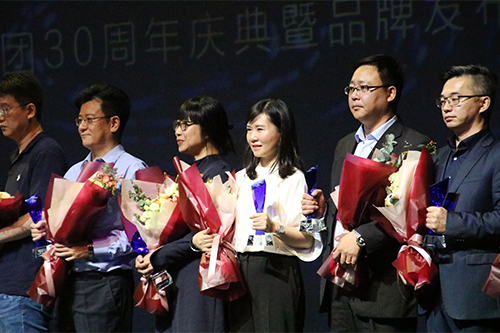 上海東方雨虹董事長兼總經(jīng)理李建華女士(右3)領(lǐng)獎