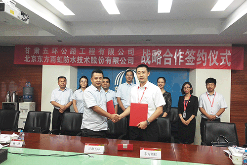 6月22-23日,甘肅五環(huán)公路工程有限公司黨支部書記、董事長崔建文,總經(jīng)理高新民一行13人考察東方雨虹。東方雨虹集團副總裁王文萍、市場營銷總監(jiān)徐萌、總裁辦主任齊芬、體系總監(jiān)謝傳英、公路交通事業(yè)部經(jīng)理田野等接待了考察團。