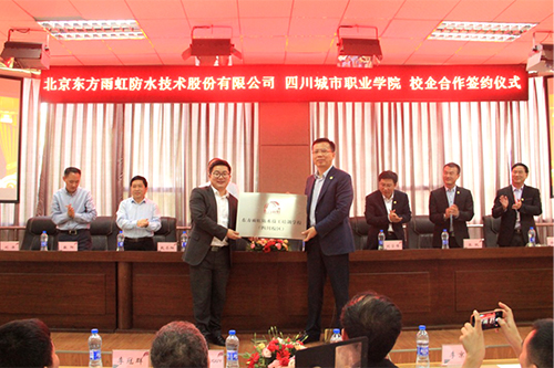 4月3日,東方雨虹防水技工培訓學校(四川校區(qū))成立大會暨東方雨虹與四川城市職業(yè)學院合作簽約儀式在城市職業(yè)學院學術報告廳舉行。 東方雨虹集團總裁向錦明、集團工程總監(jiān)劉學峰、四川東方雨虹總經(jīng)理張帆、東方雨虹集團培訓學院副院長徐志明、四川城市職業(yè)學院院長王世倫、副院長趙齊陽、四川城市職業(yè)學院對外合作部部長敬陽、四川城市職業(yè)學院建筑工程學院院長劉洋等以及300余名學生代表見證了此次簽約儀式。