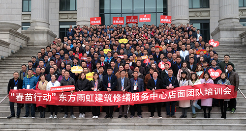 3月5日,“春苗行動(dòng)”東方雨虹建筑修繕服務(wù)中心店面團(tuán)隊(duì)培訓(xùn)會(huì)召開。來自全國(guó)各地70多個(gè)城市、近300名服務(wù)中心團(tuán)隊(duì)成員共聚蘇州,共謀修繕大業(yè)。此次培訓(xùn)會(huì)持續(xù)5天,這是東方雨虹建筑修繕“春苗行動(dòng)”的第二場(chǎng)服務(wù)中心培訓(xùn)會(huì),旨在提升服務(wù)中心團(tuán)隊(duì)專業(yè)能力和建筑修繕服務(wù)中心整體運(yùn)營(yíng)能力,在2018共同開啟建筑修繕元年。