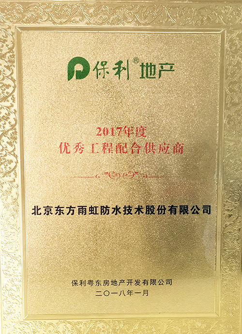 東方雨虹榮獲保利粵東“優秀工程配合供應商”榮譽稱號