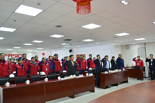 伴隨著國歌和風行防水企業司歌的奏響,本次大會正式開始。昆明生產基地廠長陳坤先生對基地2017年的各項工作完成進行了總結,他表示,在全體員工的共同努力下,生產基地完成了集團2017年下達的各項工作任務指標,在有胎、無胎卷材產量、發貨量方面均創了生產基地月度歷史新高。陳坤要求全體員工繼續齊心協力,發揚吃苦耐勞的精神,保質保量的完成新一年集團下達的任務指標。會上對生產基地2017年度“優秀班組”、“優秀員工”進行了表彰,由2017年度大學生校園招聘入職代表發表了加入東方雨虹的感想。