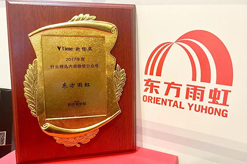 VTime·新橙獎(jiǎng)評(píng)選致力于發(fā)現(xiàn)中國微信公眾號(hào)領(lǐng)域中有著突出特點(diǎn),能夠在激烈的市場(chǎng)競(jìng)爭(zhēng)中長期保持優(yōu)質(zhì)用戶體驗(yàn)和高度用戶粘性的優(yōu)秀賬號(hào)。從社會(huì)價(jià)值、品牌價(jià)值、服務(wù)價(jià)值、傳播價(jià)值、關(guān)注度、前瞻性、影響力、文章閱讀量等方面對(duì)微信公眾號(hào)進(jìn)行綜合考量。 2017年,東方雨虹公眾號(hào)先后推出過關(guān)于企業(yè)文化、優(yōu)秀雨虹人、奮斗精神、工廠建設(shè)、人文環(huán)境、學(xué)習(xí)、創(chuàng)新、新聞動(dòng)態(tài)、經(jīng)典工程、虹遍中國等不同方面的策劃。力求從各個(gè)角度展現(xiàn)企業(yè)形象和員工風(fēng)貌,以小見大,從細(xì)節(jié)之處展現(xiàn)東方雨虹對(duì)于卓越品質(zhì)的不懈追求。 此次獲獎(jiǎng),是從專業(yè)層面對(duì)“東方雨虹”企業(yè)微信號(hào)綜合實(shí)力和價(jià)值的肯定。未來,東方雨虹將致力于提供更及時(shí)的企業(yè)資訊和更豐富的內(nèi)容,為讀者帶來更好的用戶體驗(yàn)。