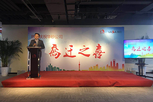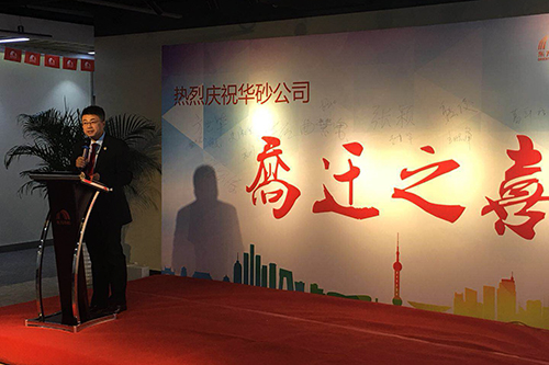 接著,由華砂公司董事長(zhǎng)方世畢先生致辭,他感謝了前來祝賀的嘉賓,總結(jié)了華砂公司過去的工作并對(duì)接下來的發(fā)展方向做出重要指示,同時(shí)表明華砂總部搬遷到花橋是一個(gè)新的起點(diǎn),華砂公司因砂而生、因砂而美,也必將因砂而走向世界。