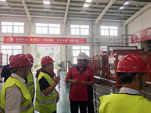 馬到原向考察團(tuán)介紹了唐山東方雨虹的整體情況、建設(shè)規(guī)模、企業(yè)優(yōu)勢等,重點(diǎn)講解砂漿車間的生產(chǎn)設(shè)備、工藝、產(chǎn)品等情況,并陪同考察團(tuán)參觀了砂漿車間的德國高效旋轉(zhuǎn)混合機(jī)、八口旋轉(zhuǎn)包裝機(jī)、高位碼垛機(jī)等國際先進(jìn)裝備。
