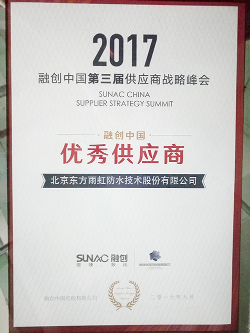 9月15日,融創(chuàng)中國(guó) “五好合作、歸心前行”第三屆品牌供應(yīng)商戰(zhàn)略峰會(huì)在天津召開。融創(chuàng)集團(tuán)執(zhí)行董事兼行政總裁汪孟德、執(zhí)行總裁馬志霞、成本管理中心總經(jīng)理丁彤及各區(qū)域負(fù)責(zé)人,優(yōu)秀集采和區(qū)域供應(yīng)商等700余人參會(huì)。東方雨虹榮獲融創(chuàng)中國(guó)“優(yōu)秀供應(yīng)商”稱號(hào)。