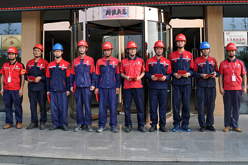 8月21日早上,在徐州臥牛山生產(chǎn)基地的升旗儀式上,廠長(zhǎng)徐庭忠將對(duì)8名獲得“技師”稱號(hào)的技術(shù)工人進(jìn)行表彰,頒發(fā)證書,佩戴肩章。