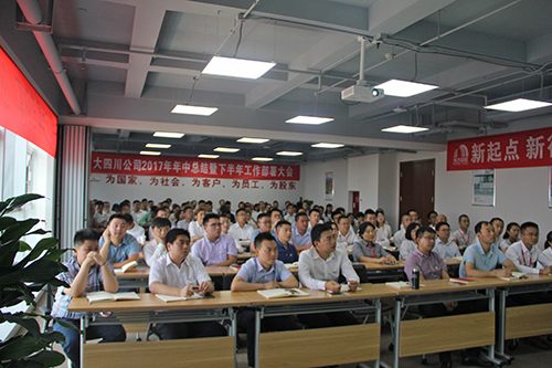 7月6日,四川東方雨虹召開2017年半年工作總結暨下半年工作部署大會,來自成都直屬、四川工渠,重慶渠道約110相關人員參加會議。   會上,總經理張帆對公司上半年取得的成績做了全面分析和點評,并安排部署了下半年的工作。市場部經理李江平作了市場工作報告,闡述了四川公司所面臨的市場機遇和挑戰。同時,對上半年完成任務的銷售人員和表現優異的職能人員進行表彰。     通過總結與展望,全體四川東方雨虹人將謹記“真相信、真學習、真去干”的九字真言,站在新的起點,不忘初心,力爭取得更好的成績。