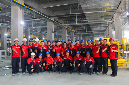 凝結(jié)了建設(shè)開發(fā)團(tuán)隊、車間全體員工、施工單位232天的辛勤汗水和付出,唐山聚氨酯防水涂料生產(chǎn)線比原定計劃開機(jī)時間提前半個月投產(chǎn)。這條生產(chǎn)線,是東方雨虹第二條聚氨酯防水涂料生產(chǎn)線,擁有29臺反應(yīng)釜、56臺儲罐&計量罐、4365個閥門、20000余米管線;配備多套獨立的真空系統(tǒng)、空壓站、冷卻水系統(tǒng)、冷凍水系統(tǒng)、制氮系統(tǒng)、粉料輸送系統(tǒng)和包括機(jī)械手在內(nèi)的6條全自動罐裝線,從上桶到尋口,到上蓋、貼標(biāo)、掃碼、碼垛、纏膜全過程自動化;熱能綜合利用,節(jié)能且節(jié)約成本;采用高性能SIEMENS S7-400CPU、18IO從站、2368點DI、1152點DO、424點AI、120點AO、多達(dá)19稱重系統(tǒng),70臺變頻電機(jī)驅(qū)動及大量普通驅(qū)動電機(jī);全方位控制溫度、液位、重量、壓力、真空、流量,通過十幾套順控流程精準(zhǔn)控制各產(chǎn)品線的生產(chǎn)工藝流程;而整條生產(chǎn)線的控制,僅需要12名工人。