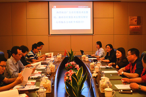 4月20日下午,廣東省質(zhì)量技術(shù)監(jiān)督局行審處長阮忠、審查中心主任陳靜香、行審處主任科員黎明、審查中心辦公室主任張聰,惠州市質(zhì)量技術(shù)監(jiān)督局行政審批科科長高美云及副科長陳本聰一行六人考察東方雨虹惠州生產(chǎn)基地。 東方雨虹廣東公司常務(wù)副總經(jīng)理孫福琴、惠州生產(chǎn)基地廠長趙海濤陪同考察團參觀了生產(chǎn)基地涂料車間、卷材車間和成品倉儲,期間,趙海濤對公司產(chǎn)品體系、產(chǎn)能情況及生產(chǎn)線發(fā)展進行了全面講解。