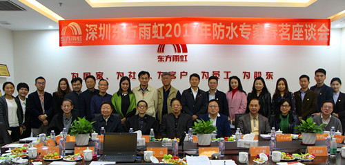 3月7日,深圳東方雨虹2017年防水專家春茗座談會(huì)在深圳衛(wèi)東龍商務(wù)大廈召開,深圳市防水行業(yè)協(xié)會(huì)會(huì)長瞿培華教授、深圳大學(xué)建筑設(shè)計(jì)研究院張道真教授等15位專家出席本次座談會(huì),廣東東方雨虹董事長楊浩成、深圳東方雨虹常務(wù)副總經(jīng)理歐磊率深圳公司管理團(tuán)隊(duì)與專家組互動(dòng)交流。 座談會(huì)上,楊浩成致歡迎辭,并介紹了廣東公司2016年經(jīng)營概況及后續(xù)發(fā)展規(guī)劃。歐磊就深圳公司經(jīng)營概況發(fā)言。隨后,瞿培華教授代表專家委員會(huì)發(fā)言,瞿培華首先肯定了東方雨虹的發(fā)展成果,講述了專家委員會(huì)近來在引導(dǎo)行業(yè)質(zhì)量提升、把控防水評審等領(lǐng)域開展的主要工作,并提出了打造“防水行業(yè)大數(shù)據(jù)庫”的設(shè)想。 隨后,會(huì)議進(jìn)入互動(dòng)環(huán)節(jié),由深圳公司總工程師吳光文主持,與會(huì)成員就“專家評審注意事項(xiàng)”及“大型公共建筑、市政管廊防水做法建議”開展討論,專家們各抒己見,為東方雨虹提出了寶貴的建議。 東方雨虹的發(fā)展離不開專家委員會(huì)的支持,深圳東方雨虹將一如既往地?cái)y手防水專家委員會(huì),打造高質(zhì)量防水工程、共建和諧人居。