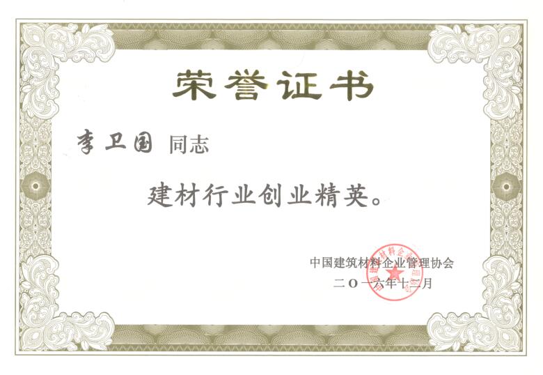 近日,“中國建筑材料企業管理協會成立30周年座談會暨2016年全國建材行業優秀企業家發布會”在北京成功召開。東方雨虹董事長李衛國榮獲“建材行業創業精英”稱號。