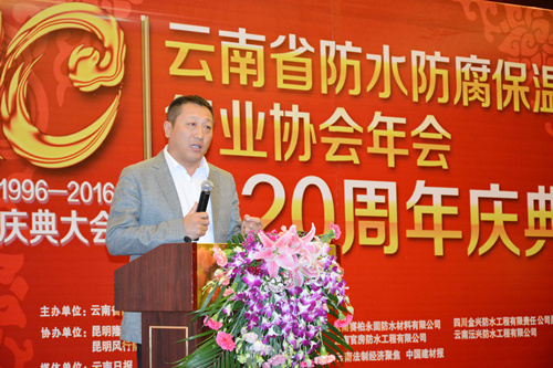 4月13日,云南省防水防腐保溫行業協會2015年年會暨二十周年慶典大會在昆明世紀金源大酒店隆重舉行,中國建筑防水協會、云南建設廳、云南省質量監督局等部門領導、協會領導及企業家共計200余人參加。