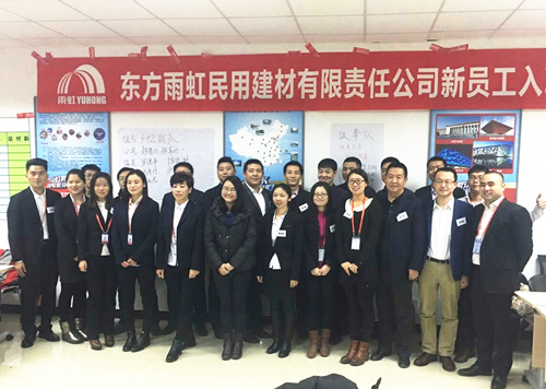 2016年1月25日,東方雨虹民建企業大學“常青藤”培訓項目迎來新年第一期22名培訓學員。   “常青藤”培訓項目旨在為東方雨虹民用建材有限責任公司新入職員工提供企業文化、制度流程方面的培訓,以及行業、產品、應用技術等方面的知識補給,促使新員工全面了解公司的規章制度,認同公司的企業文化。   本期培訓歷時5天,共組織進行了15門課程講授。東方雨虹民用建材公司總經理熊俊為本次培訓致辭。東方雨虹民用建材公司產品技術總監熊衛鋒、應用技術總工程師徐斌等公司經驗豐富的中高級管理者組成講師陣容,紛紛通過實際案例、動手實操為學員們講授了專業知識。   通過本次培訓,使學員全面了解公司的經營模式及管理制度,堅定了工作信念,滿腹能量回到各自的崗位,為實現卓越東方雨虹貢獻力量。