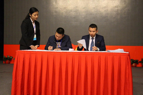下午,長沙洛迪環保科技有限公司與各地新經銷商正式進行簽約儀式,各經銷商們在主持人的提示下先后上臺與洛迪總經理吳浩簽訂代理合同。