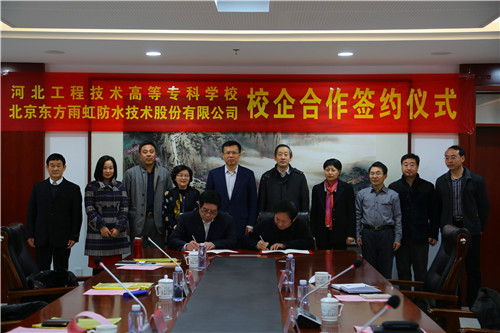 11月17日,東方雨虹與河北水利電力學院(現河北工程技術高等專科學校)簽署聯合培養項目意向書,未來,東方雨虹將與校方在建筑防水、保溫等職業化教育領域開展合作,探索理論與實踐相結合的教學模式,創新校企合作、中西結合的教學方法,雙方優勢互補,力圖成為中國建筑防水、保溫領域職業化教育的成功典范。 簽約儀式上,河北水利電力學院(現河北工程技術高等專科學校)黨委書記蘭耀東首先致歡迎辭,對于學校的現狀進行了詳細的介紹:學校始建于1952年,多年來經過不斷拼搏發展,于2015年10月16日,通過專家評定,升為本科院校。未來,學校將建設成為行業特色鮮明、學科特色突出的應用技術型本科院校。與東方雨虹的校企合作,將為學校人才發展注入新的活力,學校也會進一步強化專業培訓與實踐教學的針對性,設計符合企業需求的教學方案,培養更多創新型、實用型人才。