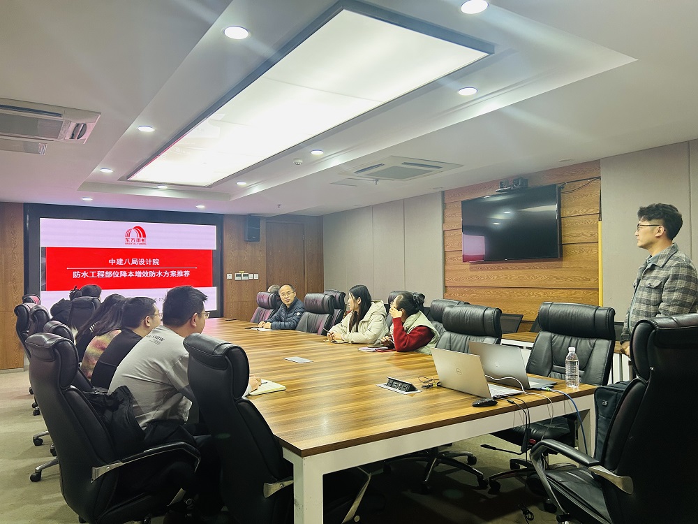 日前,中建八局(山東)設(shè)計(jì)咨詢有限公司(以下簡稱“中建八局設(shè)計(jì)院”)與東方雨虹舉辦建筑工程防水技術(shù)交流會。此次交流會旨在推動雙方在建筑防水技術(shù)領(lǐng)域合作,共助行業(yè)標(biāo)準(zhǔn)和規(guī)范的實(shí)施。中建八局設(shè)計(jì)院總設(shè)計(jì)工程師王同春主持會議,東方雨虹山東公司技術(shù)總工宿健受邀分享。