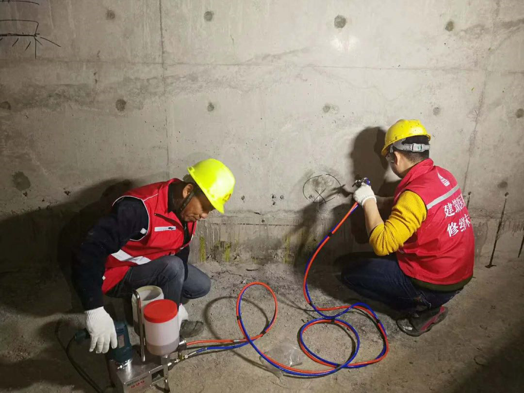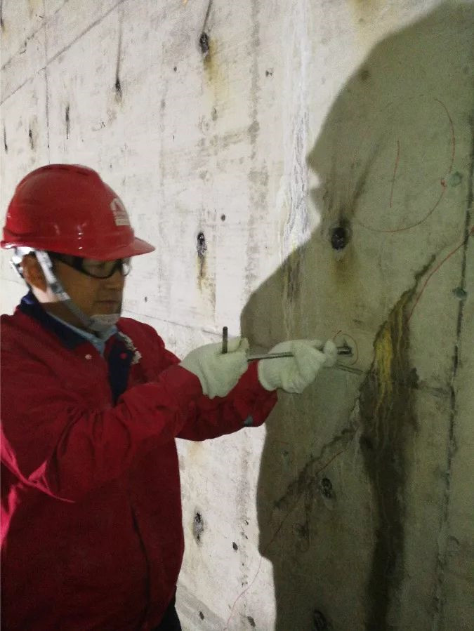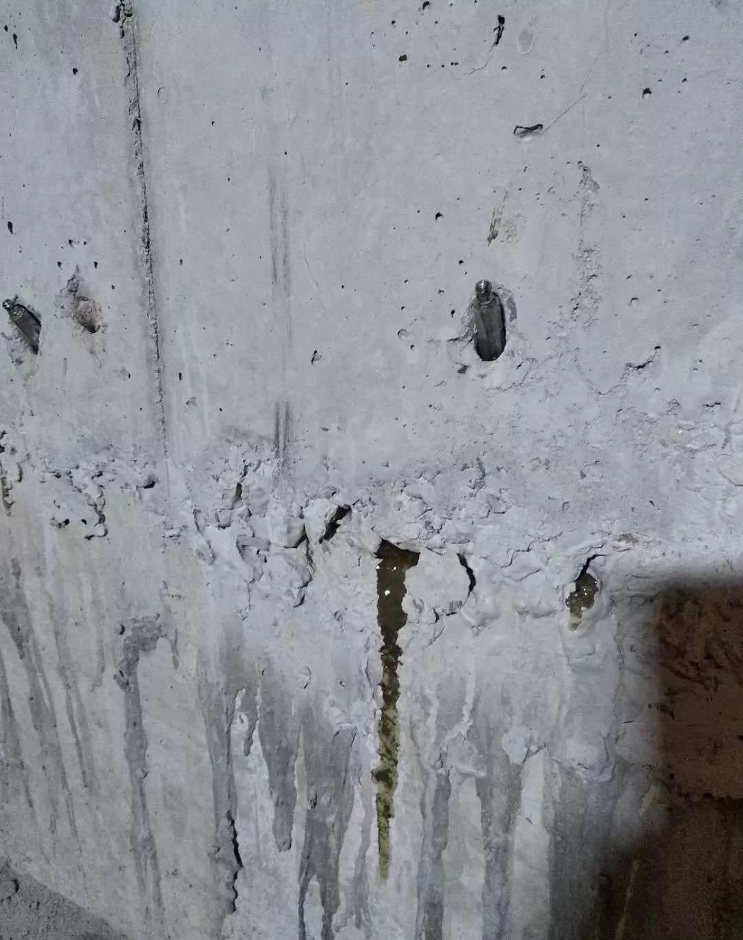 灌漿針頭需要取出,用堵漏2#進行孔洞封堵。灌漿針頭為鋁制品。如果殘留在墻體內部,由于其和混凝土的熱脹冷縮系數不同,將來容易在針頭針頭周邊因為溫度應力形成裂縫。