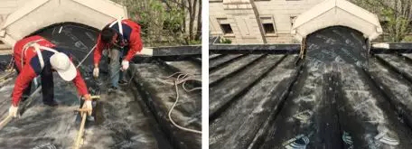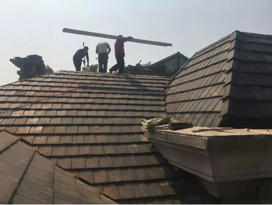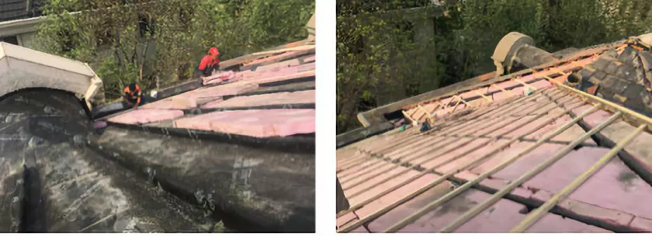 工序復(fù)雜,需要拆除飾面瓦、保溫、龍骨、原防水層至結(jié)構(gòu)層;