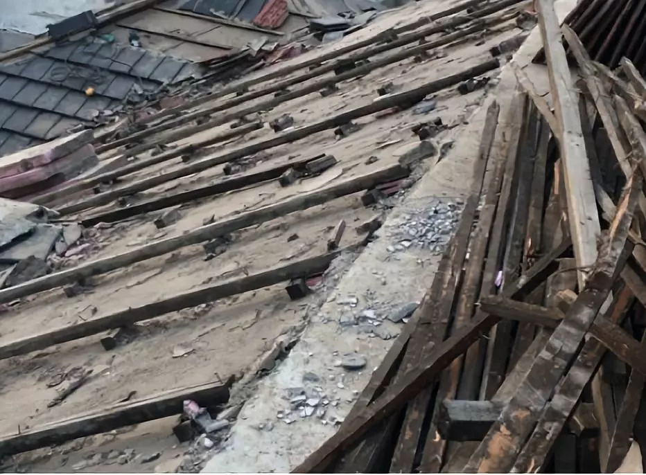 木條未做防腐處理,木條腐蝕斷裂部位瓦片松動,瓦片之間出現(xiàn)縫隙,雨水沿縫隙進(jìn)入下部;