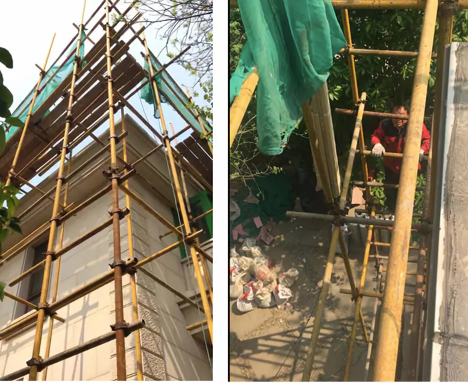 需要搭設(shè)鋼管架直至屋頂,材料運(yùn)輸及垃圾清運(yùn)均通過吊機(jī)上下運(yùn)輸;
