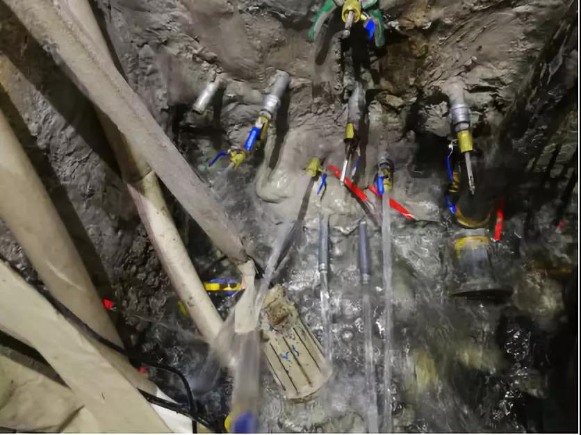 大量涌水和少量涌水的核心區(qū)別在于,分水和注漿阻水不同。少量涌水,可以直接采用CG-205注漿。因?yàn)樗畨狠^小,反應(yīng)時(shí)間充分(可適當(dāng)延長混合路徑),可以直接堵住。而大量涌水,水壓很大。單純的CG-P205根本來不及反應(yīng)就會被沖走。