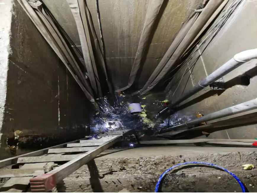 垃圾有兩類,一類是注漿產(chǎn)生的垃圾,比如溢出的發(fā)泡聚氨酯;另一類是底部的泥沙。一些超大涌水量的電梯井,維修時(shí),會分多次注漿。因?yàn)橐恍┯克谠诘装搴蛡?cè)墻交界的陰角處。用水泵降水,水位有可能降到一定程度降不下去。那就需要處理先露出的部位,然后再降水,再處理水下的部位。