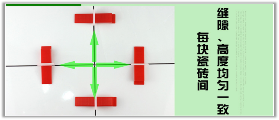 勻——留縫均勻一致,保證每塊瓷磚之間的縫隙大小相同。