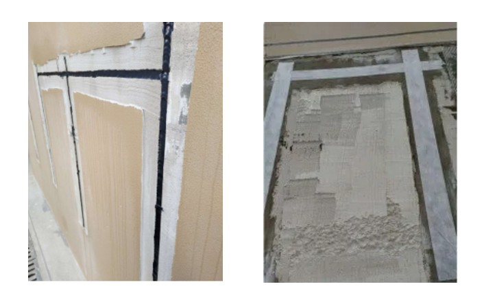 2. 鏟除裂縫兩側(cè)外墻涂料、膩子及丙乳液至輕質(zhì)混凝土板。